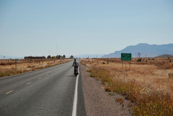 End result – we’ve done another 100km day and are in Columbus (a bit further east than Antelope Wells and open 24hrs a day) where we hope they have a nice man who’ll let us into Mexico tomorrow morning! Sarah has quite rightly decided that riding 100km in a day gives her saddle too much of a chance to inflict pain, and that long straight roads are boring. We don’t quite know how the road-only cyclists manage it.