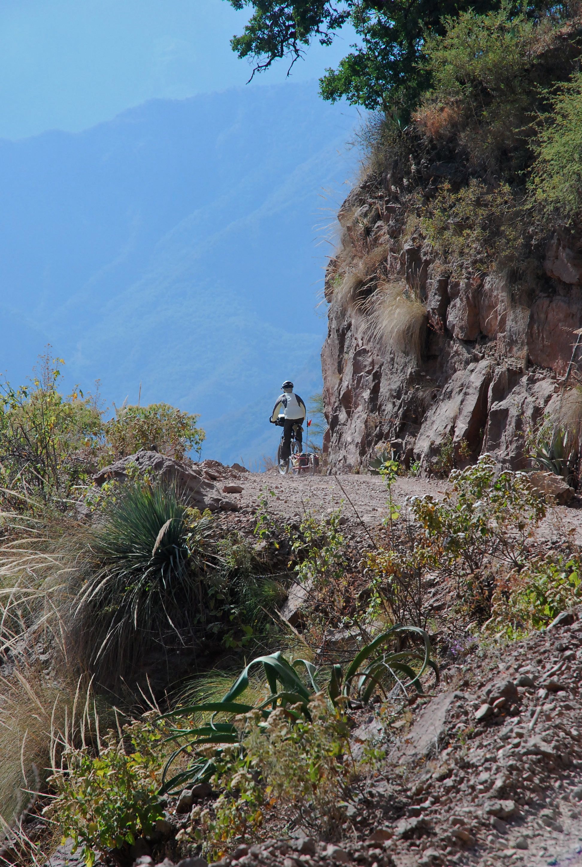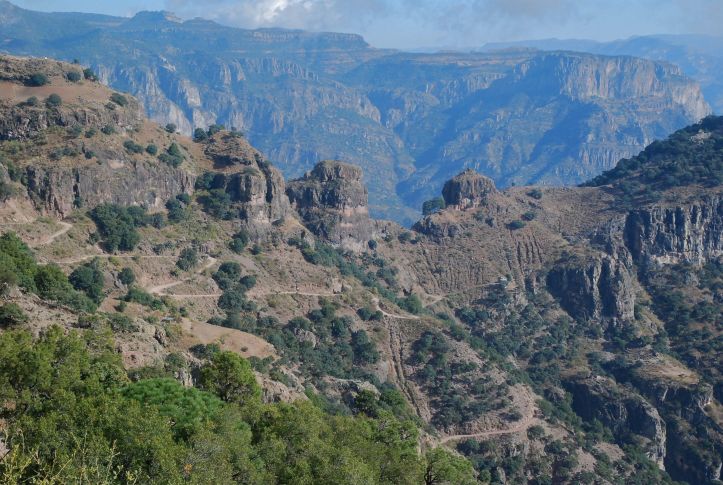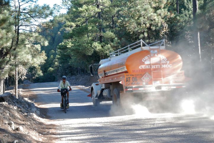 We spent a couple of days in Creel resting and routeplanning. Setting out from Creel nearer lunchtime than planned meant my estimate of a “day or two” off the mark from the start. Paved road dives and climbs to San Raphael via the viewpoint at Devisadoro. The scenery along there is pretty spectacular in itself, and a hint of the magnitude of the canyon system at Devisadoro only served to increase the worried thoughts of the ‘up’ back out of the canyon.