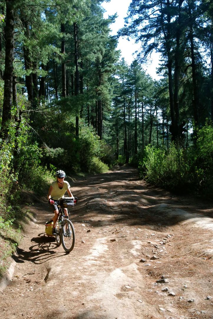 We’d been looking forward to an off-road section from San Miguel Totonicapán to Los Encuentros for a few weeks, and it had been one of our reasons for coming this way through Guatemala. It had been recommended to us by Matthew McCarthy, a warmshowers host in Panajachel, who’d even given us a detailed google-earth file generated when some friends had taken a GPS along the ride a couple of weeks before. In the end we rode the majority of this 40+km on Sarah’s birthday. She was in her element with narrow pine-needle strewn tracks, sunshine and interesting riding. For a pretty technical mountain bike trail we managed surprisingly well on our loaded bikes. There was only a short 200m loose/rocky uphill section that we didn’t ride. The only slight cloud were the 2 or 3 local men who told us we shouldn’t be there and not to take pictures of the trees. In the end we were able to work out that they were really worried about outsiders coming in and prospecting for timber or minerals. We took to explaining that we were just passing through, and this seemed to help.
