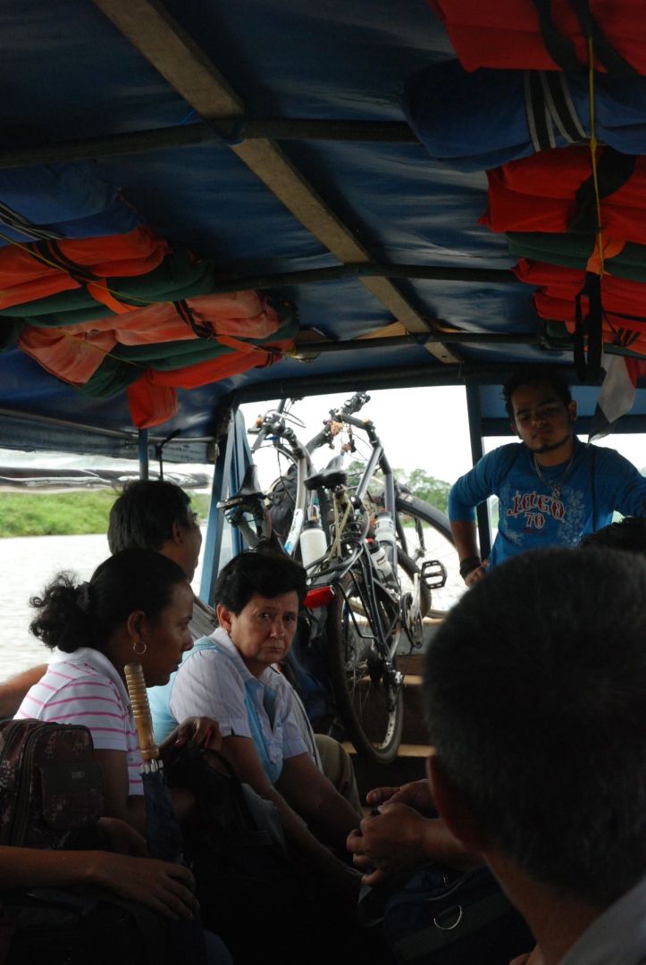 Leaving Granada behind, chased by rain. The twice-weekly ferry to San Carlos starts in the early afternoon, stops off at Altagracia on Isla Ometepe just before dark, then carries on overnight to get to San Carlos and the outlet of Lago Nicaragua at dawn the next morning. We're getting into regular evening rain now, with some afternoon additions.On Isla Ometepe all is lush and verdant. Many tourists come to climb the twin volcanos that together with a low-lying isthmus make up the island. Unfortunately, the peaks are usually wreathed in cloud, so we contented ourselves with looping-the-loop using the San Domingo beaches as a base. Sarah made the full circuit, with me having to do some 'work' to prevent me doing the full southern part.Apart from the paved sections between Altagracia, Moyogalpa and Santa Cruz, the rest of the Isla is rocky dirt. There are buses that doggedly work their way all round these sections. Mario, Anita and Sarah make the most of their unloaded bikes to get some speed upThe manufacturer of a certain drug sponsors a sign suggesting that local men don't resort to Turtle eggs to produce the same effect...After missing each other by less than a day a bit further north in Nicaragua, we've met up with Anita and Mario again. Anita is the proud owner of Sarah's (now) bright orange trailer. Anita and Sarah both love horses, but it was saddeningly difficult to find a pair without ribs sticking out.Sarah enjoying a change of saddle. She reckons that months of several hours a day would be much easier on a horse than on a bicycle. I think I might have to learn to ride a horse for the next trip!After an overnight ferry from Altagracia we arrived in San Carlos at dawn. Then came the wait for the onward lancha (river boat) to Los Chiles and the Costa Rican border.After repeatedly asking what we needed to pay to put the bikes on the river boat from San Carlos to Los Chiles when we were buying our tickets and being told there wasn't a charge; the man in blue waited until we'd unloaded the bikes before he started hassling us for money. More power to Anita - he didn't get anywhere. We felt even less charitable to him when it turned out he'd not given us the immigration and customs forms we needed to get into Costa Rica... Crossing the border by boat was fun, though not nearly as hassle-free as the others we've done.We get rained on at 4-5pm every evening. The last couple of days while working out way westward across the north of Costa Rica towards the Nicoya peninsula we've done pretty well for being in the right place to ask for a sheltered campsite when the first drops are threatening. The last one saw us extremely happily camped in an ultra-dry haybarn. After making sure we didn't do anything to set light to his haybales, the elderly farmer left us to it. The place even had electric lighting!