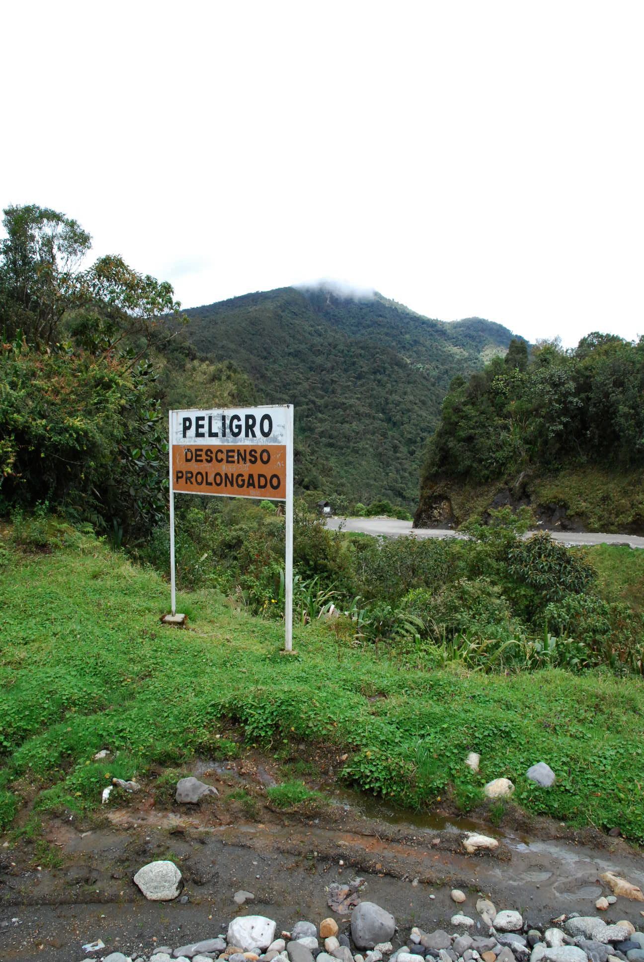 This is the only direct road between the departmental capitals of Putamayo and Nariño, and so it has a steady stream of traffic in both directions, grinding slowly up and down it. There are warnings not to travel at night in winter, given the landslide risk and isolation.On the up and up. The going is thought-provoking at times, but rideable. The greatest challenge is to maintain balance and momentum along a doable line with goods traffic trying to pass in, often both directions at onceShards of colour on the roadEvening light at our hard-won perch in the mountains above Mocoa. 40km in a day is all we can do, then we must find a flat spot for the tent that isn't a bog or at immediate risk of landslide...Looking back we can see the beginnings of the vast swathe of jungle that is the AmazonAfter the initital, massively hair-pinned climb from Mocoa, the road makes progress through the creases and folds of the mountainside towards the elusive pass in the distanceWater and lush walls of green flecked with colour surround us as we journey.Iván and his friends are doing their first loaded cycle tour from their home in Pasto to San Agustin and points beyond. Within a minute of our meeting we're offered a place to stay in Pasto with his mother - all we have to do is ring and explain how she's been volunteered!They warn people about prolonged descents - we need no help with this..Looking back from the final pass before Pasto. We'd spent most of the day in conditions that are best described as Dreich or in less scottish terminology, freezing blustery rain with dense cloud. A proper test of the wet-weather gear after so long in hotter climes