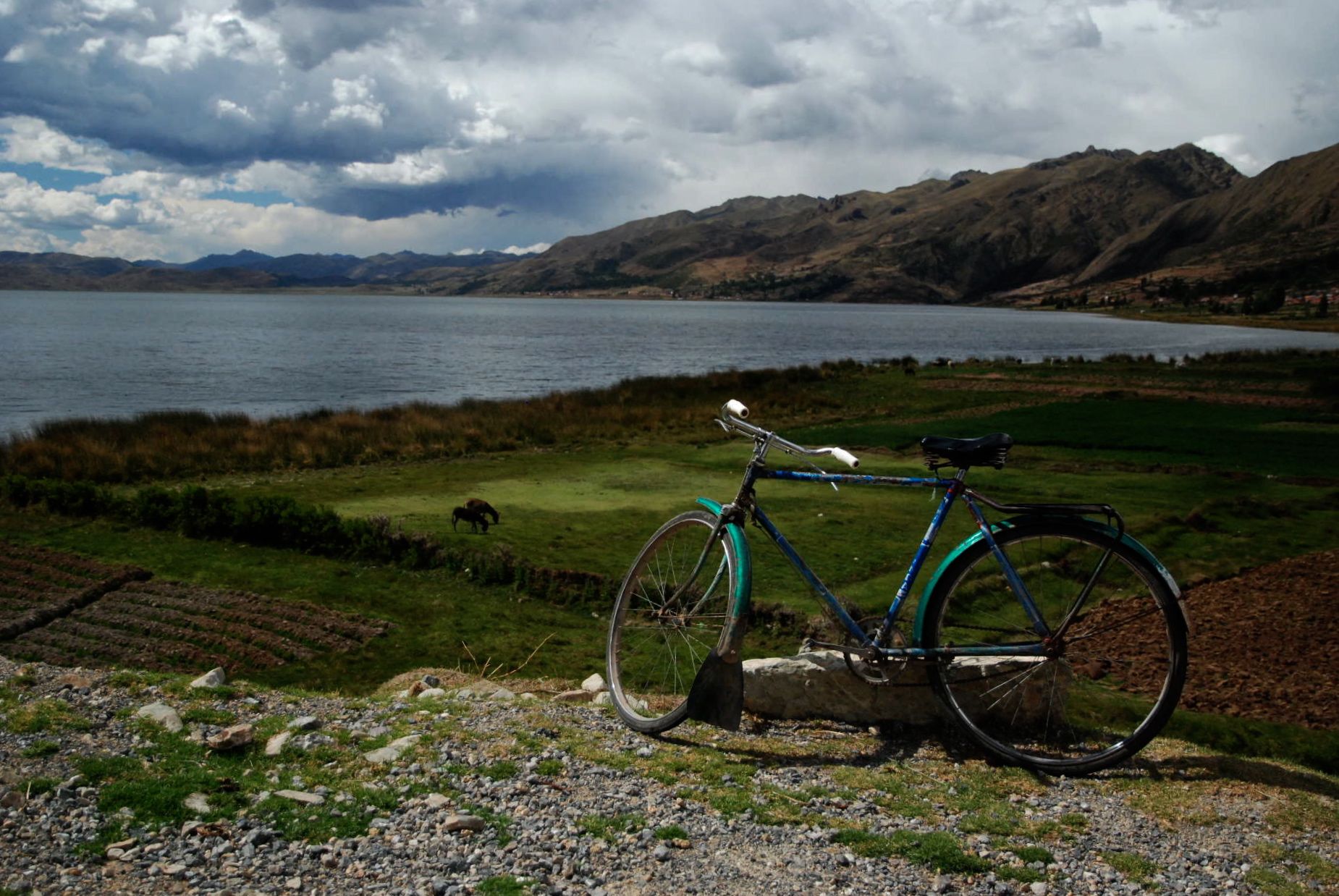 Asphalt is spreading tentacle-like from Cusco. It takes us nearly a day to escape it, but once we make it onto dirt life is very very good - Sarah heading out from ParuroThere's been a bit of work on the bridges, thankfully! Our low-point from Paruro before most of a day of climbing to AcchaWinding up, passing villages - dusty, mostly empty, sometimes with notice taken, sometimes we pass invisiblyDigging up the road again... Reluctantly climbing (again) from Pillpinto into the fading light, we pass easily - no-one else does - a clear road, but not a lot of flat land to camp onPart way up a climb, Acos - is Beetle-land again in southern Perú after all those in MéxicoAcomayo brings tarmac and more climbing, Sangarará comes with an opening of vistas and flatter lands. And bicycles. And lakes - lots of themWe dance with afternoon rain - a shimmy to the right, and it passes us giving a dramatic background to (more) roadworks and even some flamingosGentle rising dirt after Yanaoca - an unnamed Nevado in the background - morning brilliant sunshine adds to our joyNothing much up here apart from us (we could be on a bus, or riding the highway now - but we're not)