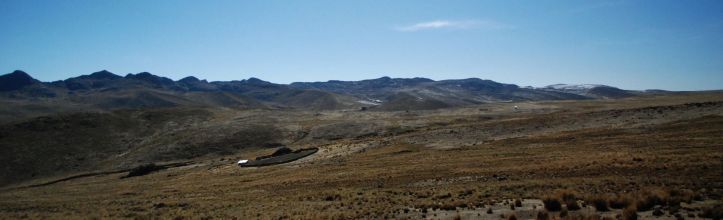 Signed off the highway a little south of Ayaviri, the Cañon Tinajani shelters herds of sheep and alpacas. Lunch, some story, and we head on.A while later we begin to climb - after nearly 25km of mostly flat riding from the highway through the Cañon. The local dogs pay their respects - grabbing at our bikes with a tenacity we don't appreciate. They're bigger and better fed than the central american ones.In contrast to relatively small numbers of Puya Raymondii we passed between Huaraz and Huallanca earlier in Perú, there is a large forest of them here. Whole hillsides with plenty in flower - this one many times my heightNear the top of the climb we camp. Just after dinner's prepared the storm arrived - snow at this altitude, but we're snug and warm. The next morning as the sun progressively bathes the view the tent is the last to escape the shadows. With only a hint of the night's weather leftCresting the pass, and with swooping downward curves to come, a pause to allow the traffic to crossSheepfolds and tin roofs. If you look carefully further up there is the glint from a pit dunny - wouldn't want to be caught short! Sanitation, water and electrification are slowly reaching the remote heightsA road to follow - sky - mountains - blissBack into cañon-lands heading for PalcaOn from Palca, heading for Lampa, we're back into the wide-open again. Diversion from incipient monotony in narrow 'short-cuts'. Juliaca and a side-trip to Puno to officially exit Perú are next