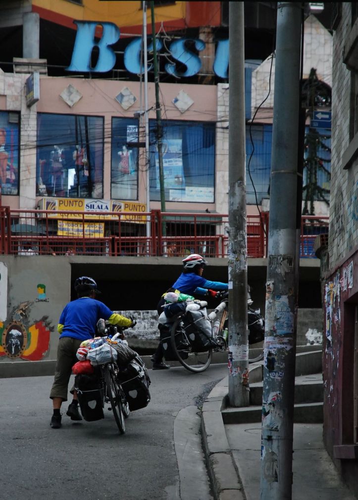 We’ve had a number of pit-stops along our path – Silver City (NM/USA), Oaxaca (México) and Bógota (Colombia).  La Paz has been one of the better organised of these – I have finally realised that you need to allow about 2 months to be sure of something there waiting for you!  Poor Cristian and Luisa had a pile of 6 packages waiting for us at the Casa de Ciclista.  Knowing what I do now about how long things last when we do another trip of this magnitude I’ll plan ahead better – possibly even from home.  Warmshowers and the Casa de Ciclista list are a good place to start to find places to send things.