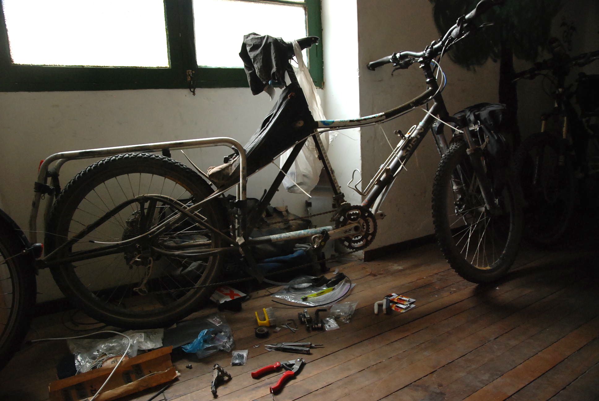 In progress. The bare bones of the Big Dummy - cable ties are a wonderful thing.