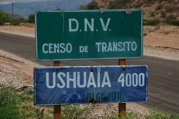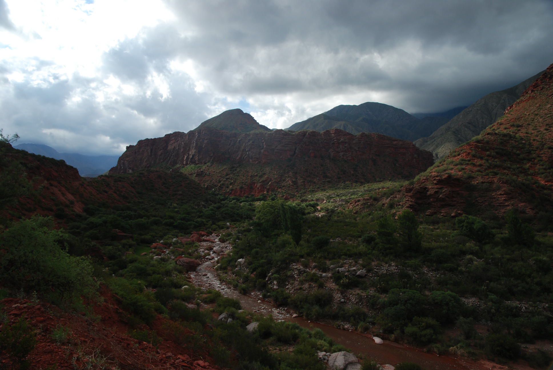 A dotted line on our map turns out to be mostly paved (and deserted). The unpaved bits are often awash with water - depth uncertainApparently the universal goal of long-distance cyclists in the Americas - Ushuaia is the southernmost settlement in South America. Everyone assumes we want to go there - we're less certain, but the lack of a destination confuses more people than would appreciate the honesty, so we often cave inThe main Ruta 40 surprises us with a dirt road section up over the Cuesta de Miranda. Red rock with lush green in the valleys tugs our minds Australiawards. A daily weather pattern - massing clouds in mid-afternoon that sometimes deliver their threatsNot an illusion - more cyclists. During a hot, empty siesta in Villa Union we meet Sarah and Alex recently ice-cream replete. "You're on mountain bikes. Our old professor is mtb-ing down South America". "Joe Cruz?" we reply and enjoy the plummeting jaws. Small world, we ponder as our routes intersect. Not our pace on tarmac though. The SYTs (Speedy Young Things) stretch the SOFs (Slow Old Farts) out of our comfort zones. Though we do feel that we can teach them a thing or two about shopping coordination and not ending up in the middle of nowhere with nothing much to eat!