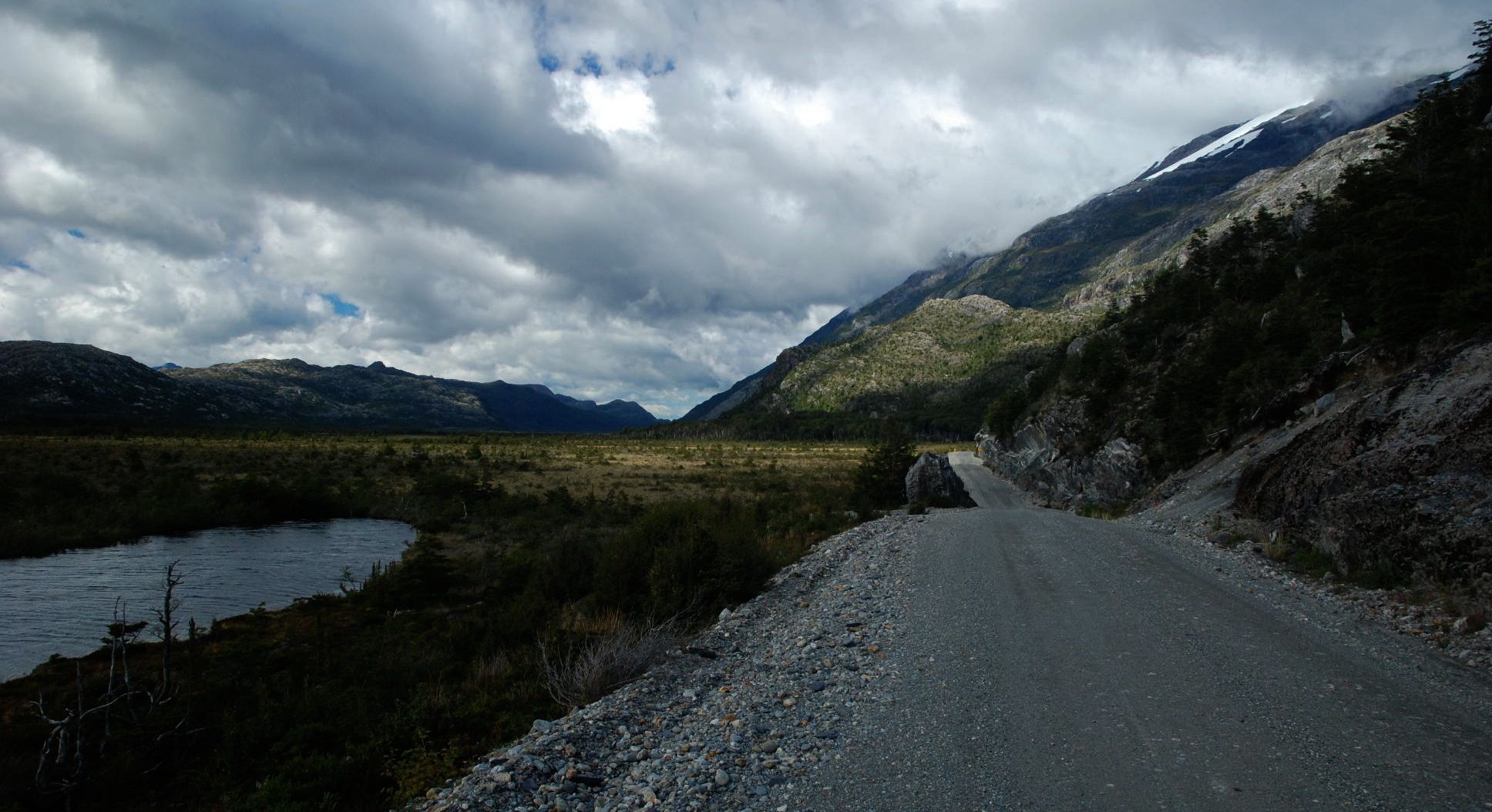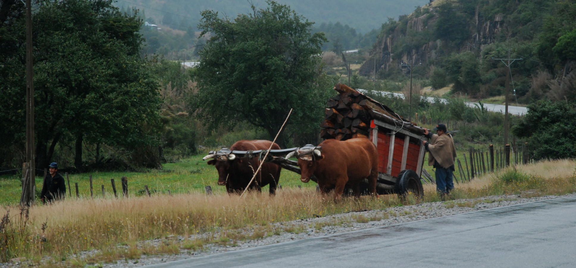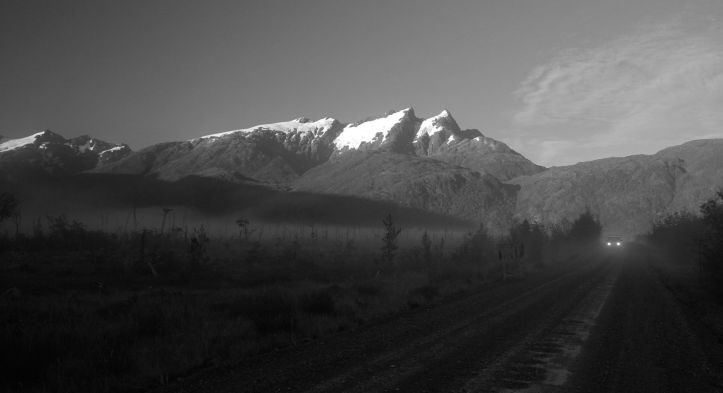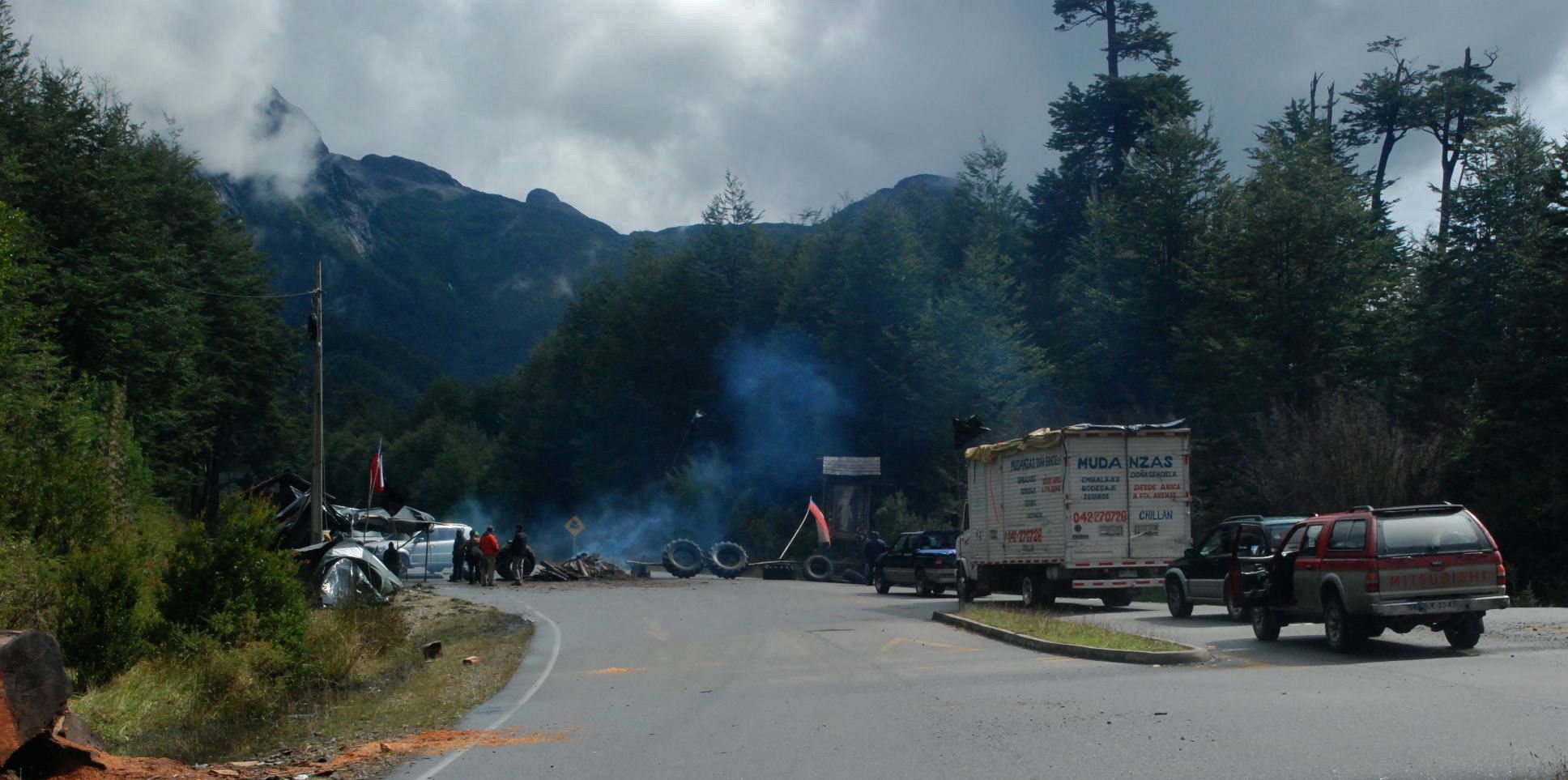 The Carretera Austral weaves its way through a region laced with fjords and lakes. Open to the southern ocean, and it’s weather, it is also an appealing destination for a future sea kayaking trip.There is water everywhere and a lushness that extends vertically from the road-side.Sparked by the Puerto Aysén fishermen protesting at jacked-up fuel prices in the region, these road-blocks prevent passage of fuel and food. There is a near complete solidarity – placards with “Aysén – tu problema es mi problema” abound, along with black flags on most vehicles. They let us through.South and north of Puyuhuapi (and a great early-mark hosteria), straddling glacier-laden mountains is Parque Nacional Queulat. We only managed glimpses of the peaks through fleeting cloud thinnings.Preparations for winter – firewood and fencing. Transported without petrol...