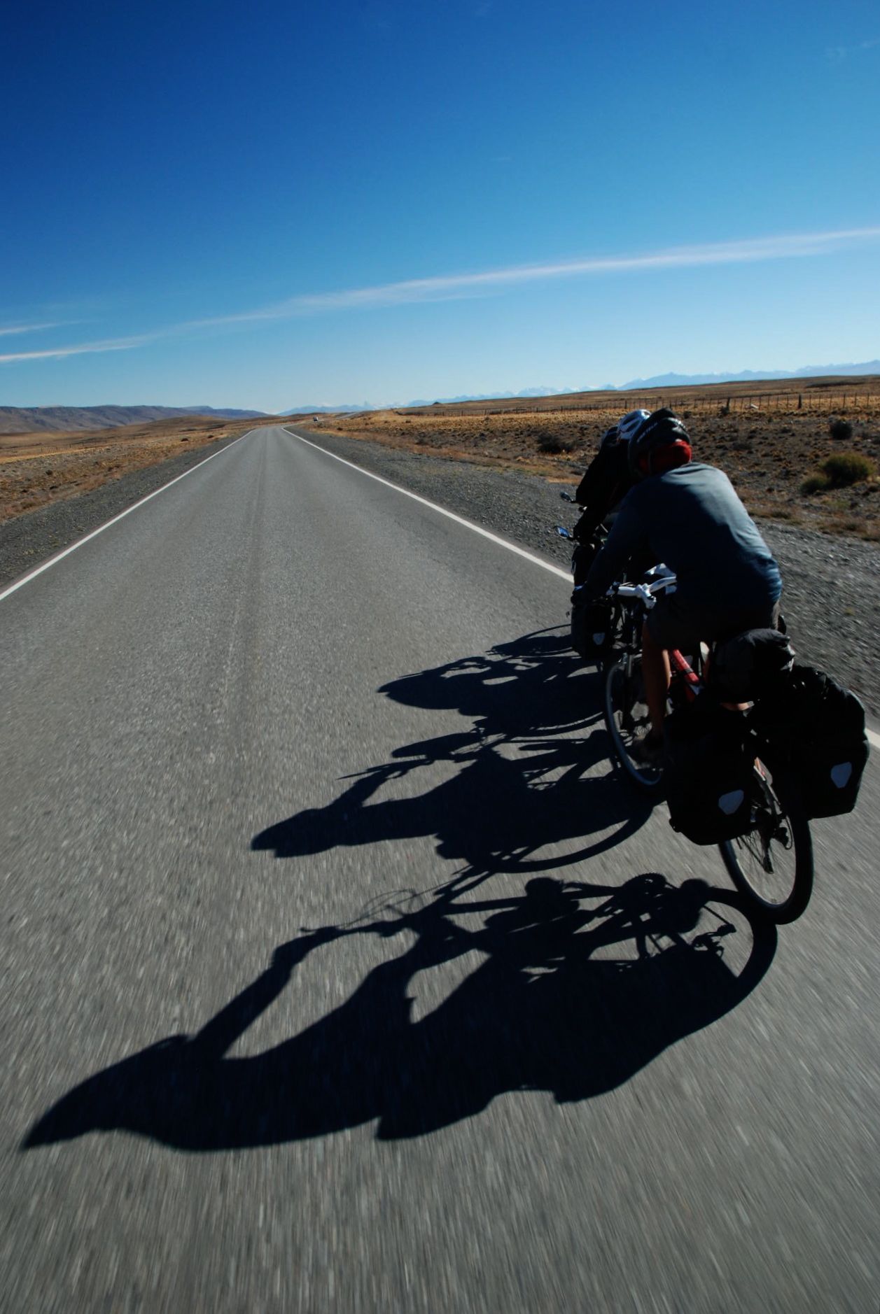 Turning back into the wind on the last stretch towards El Calafate, teamwork prevails. A rotation of leaders, holding their place for a kilometre or two while sheltering those behind transforms the experience for us. Thank you to Marta and Thomas for sharing the work with us.