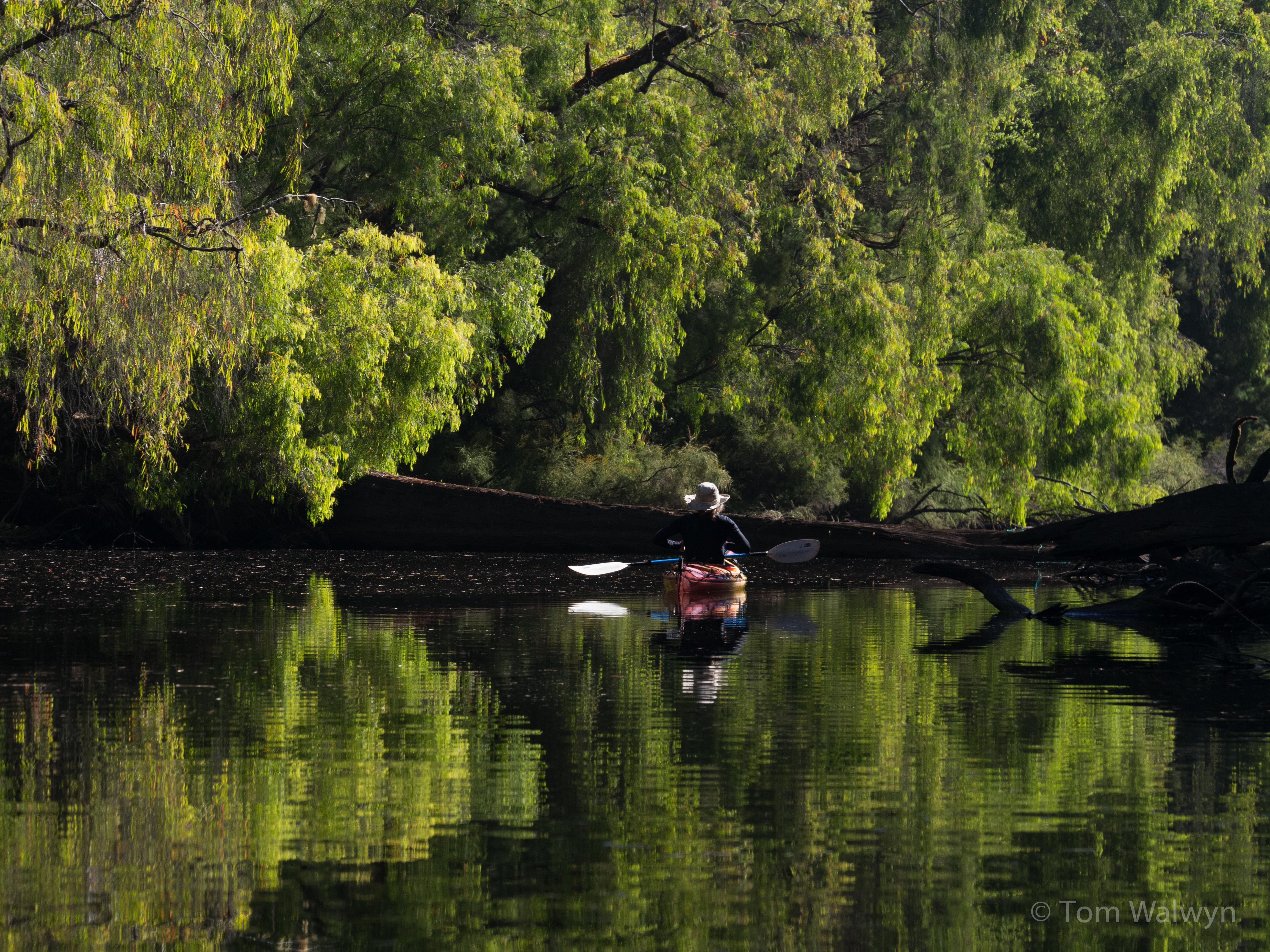 Warren River – not a place to hurry – just absorb and drift, while I fit paddle strokes in between pictures. A full-width toppled tree with ant-highway intrudes, but doesn’t cause overmuch delayMoving on with steady paddle flashEven without colour-saturating the peace is enthrallingA second log-hop helped by a Marron seeker