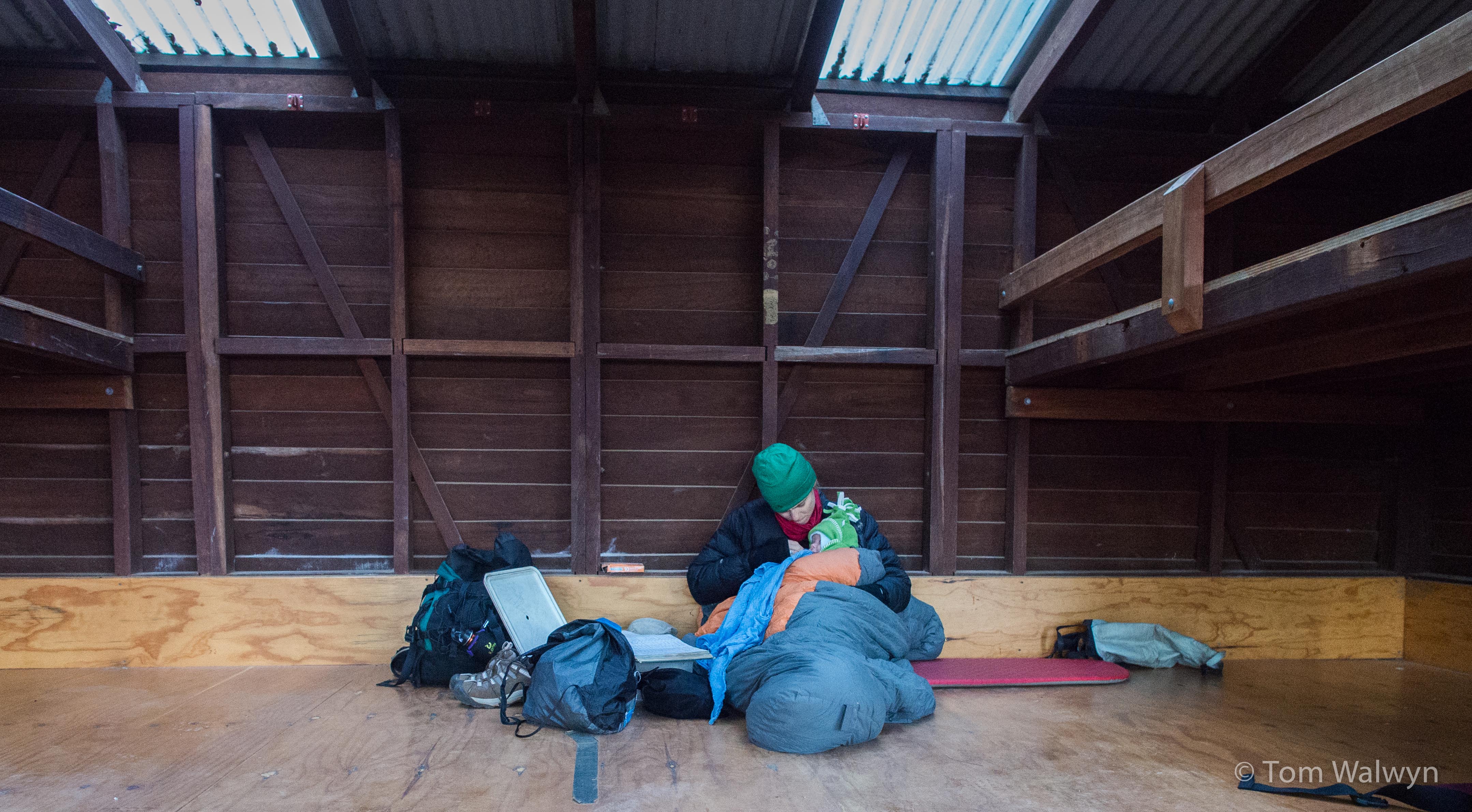 The huts on both trails (Bibb and MB) are vital – as water points more than as places to sleep. There’s not often much in the way of ground-water even in winter, so the rain-tanks make following the trails possible.