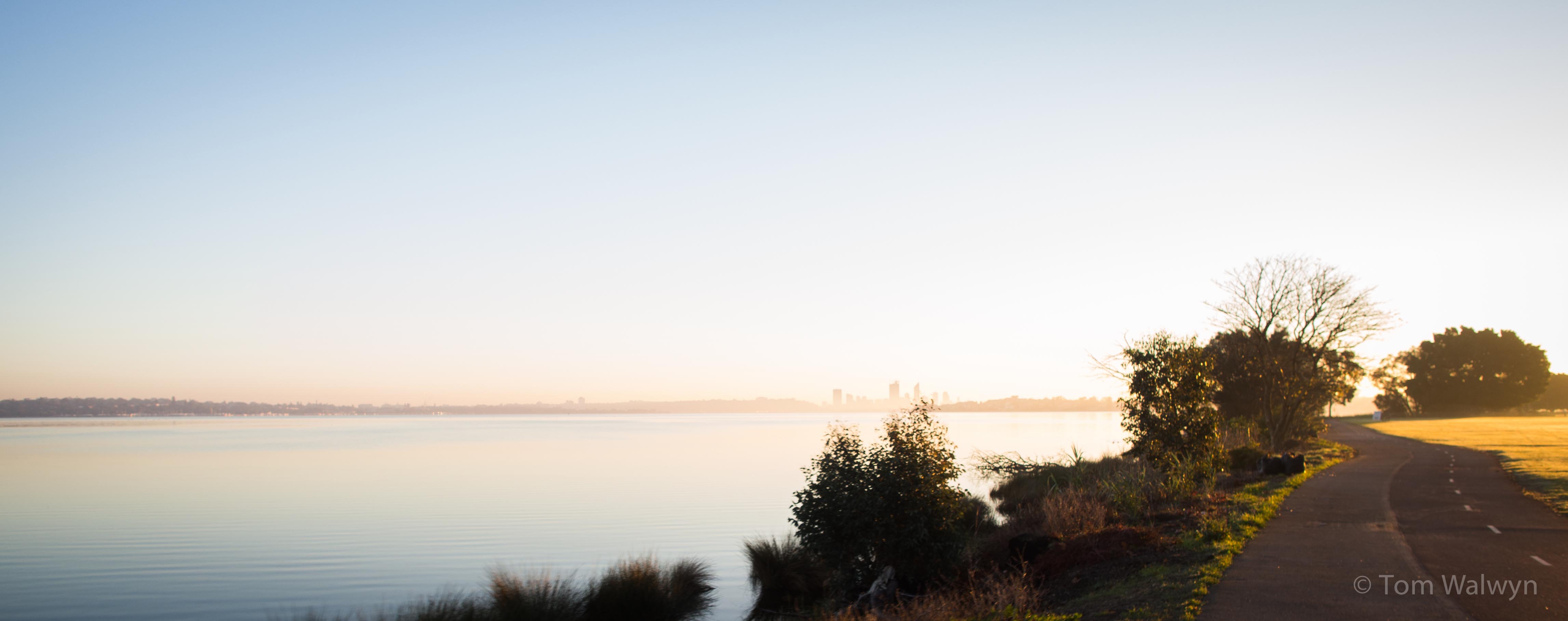 Timing the emerging view of the city towers with full-light. Today with calm water, but not always. This, the view, taking the southern shore of Swan-water and converging with the freeway cycle path masses across into town. Riding two days of the week with Nick – a colleague who’s just bought a road-bike. He seems to have a day like this every time he rides. I hope it lasts – but already he’s addicted and hopefully will keep to it on wetter days too.