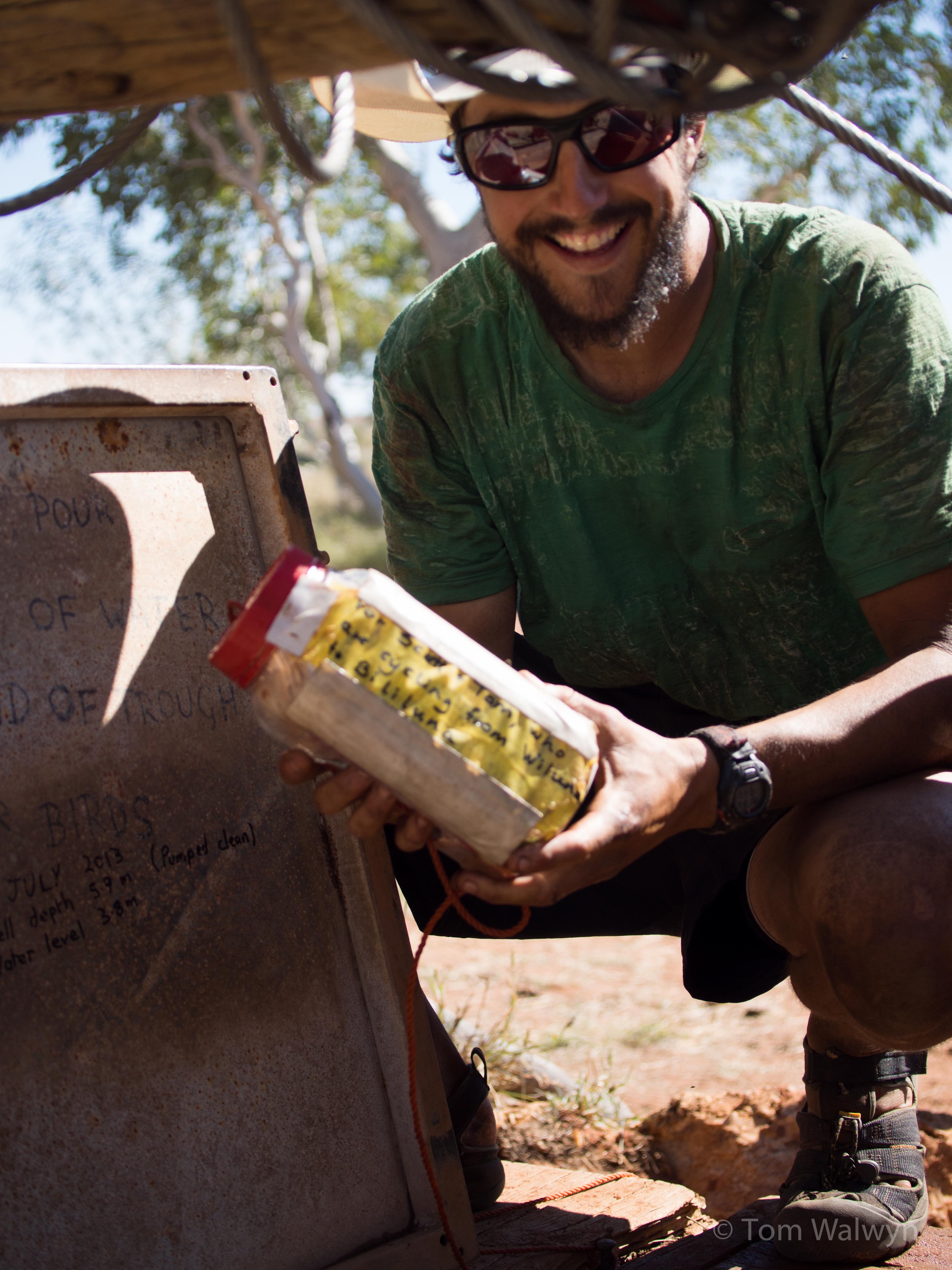 But that was nothing compared to the care and generous friendliness we were gifted. Sometime there was even a present – a package of sweets and other morsels left hanging in well 46 by the Global Gypsies tag-along group that we met at well 33.
