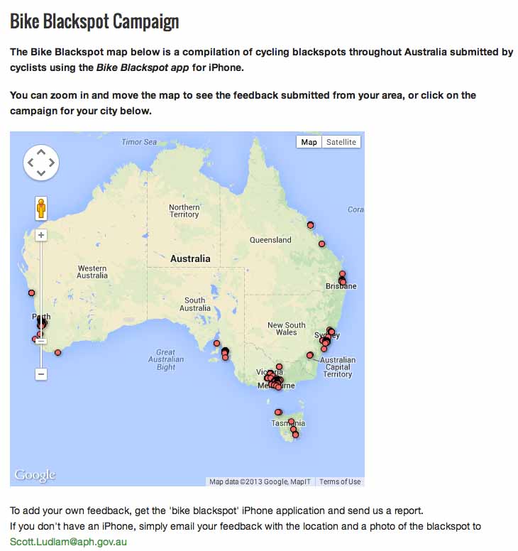 You might want to read my post and in particular Mr Reece Waldock’s response and comments in respect to the BlackSpot app. I believe that MainRoads WA maybe be now accepting Neatstreet reports but I am not sure that the BlackSpot app is being accepted as a valid reporting source (to political maybe?).