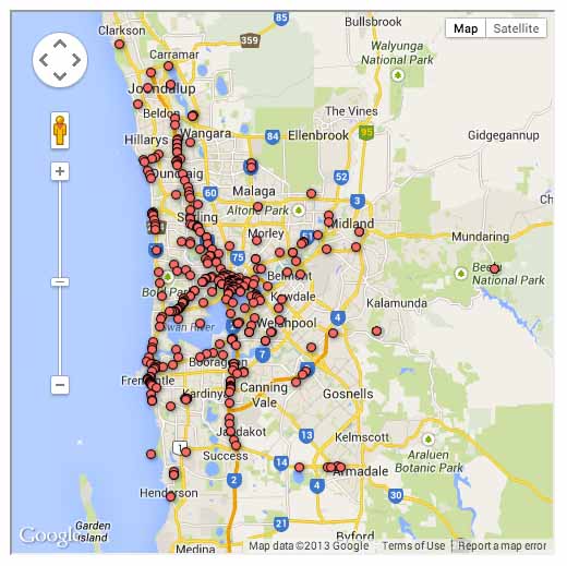 A foray into Fremantle town hall in search of the (closed) Justice of the Peace office lead me past a crowded noticeboard. Somehow my eye was caught by piece of paper advertising a system for reporting cycling-related accident blackspots.