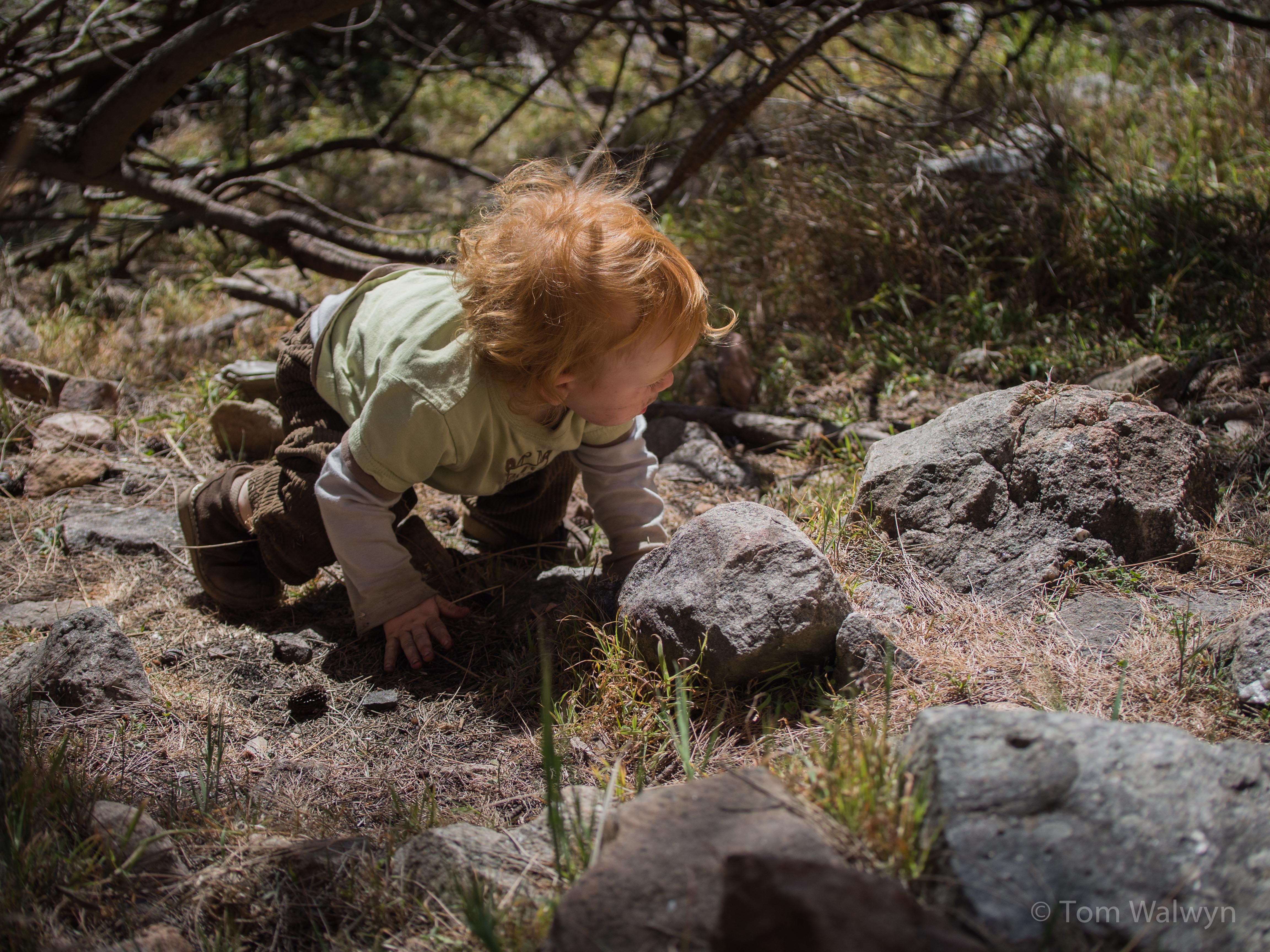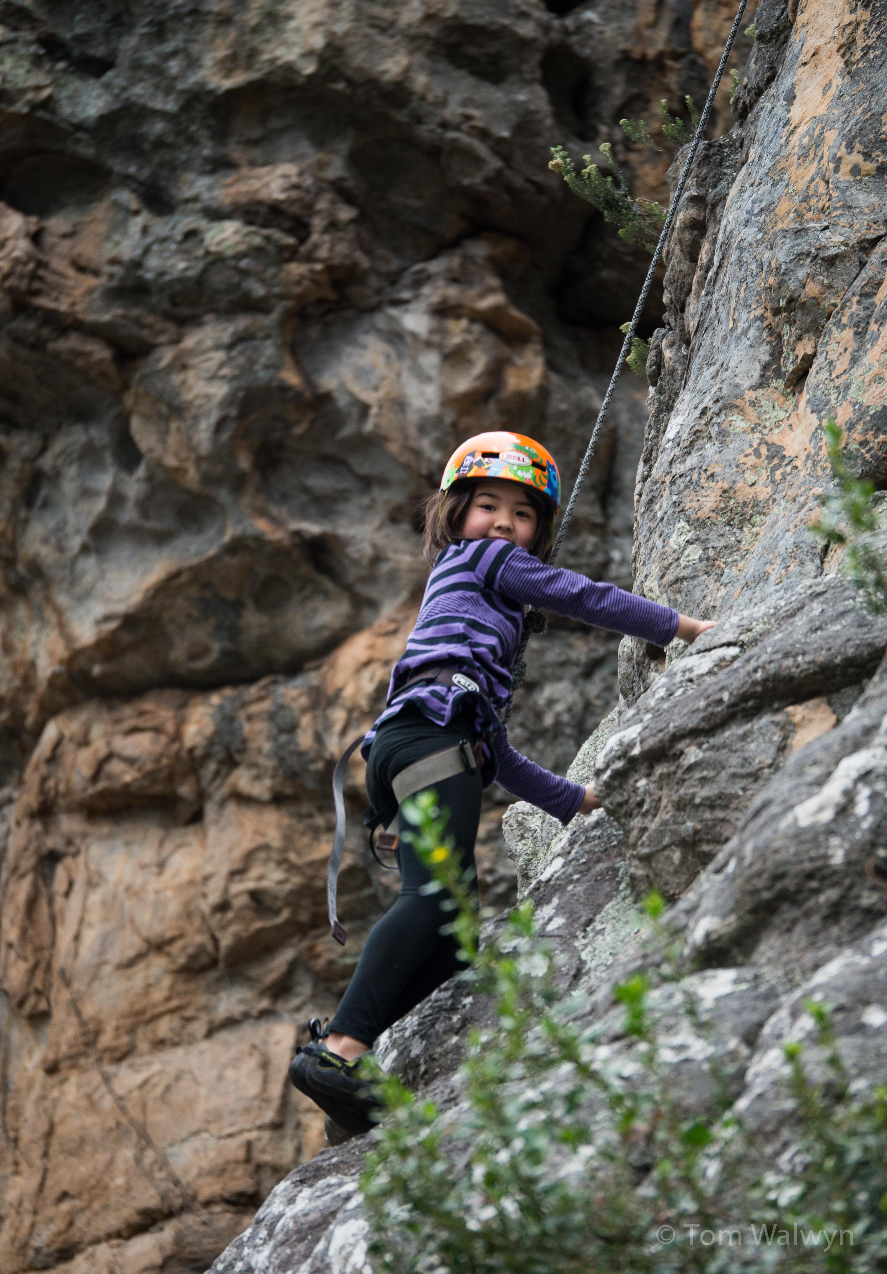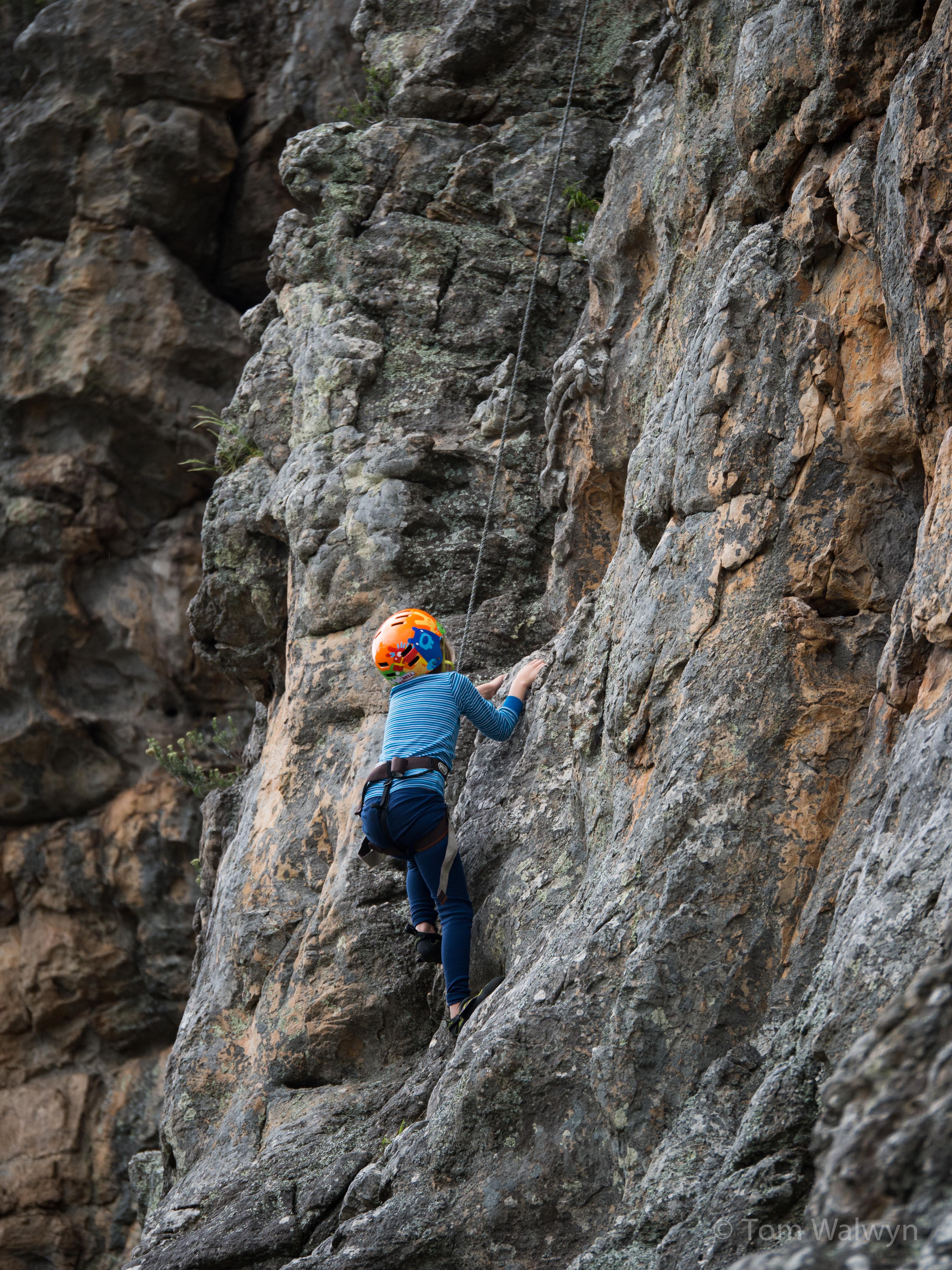 After a week of bush-camp living and lots of rocks to practice on. Bryn’s pretty happy with life. Heading upwards attached to a rope might attract his interest at some point (or there might be too much fun to be had at the bottom :-))