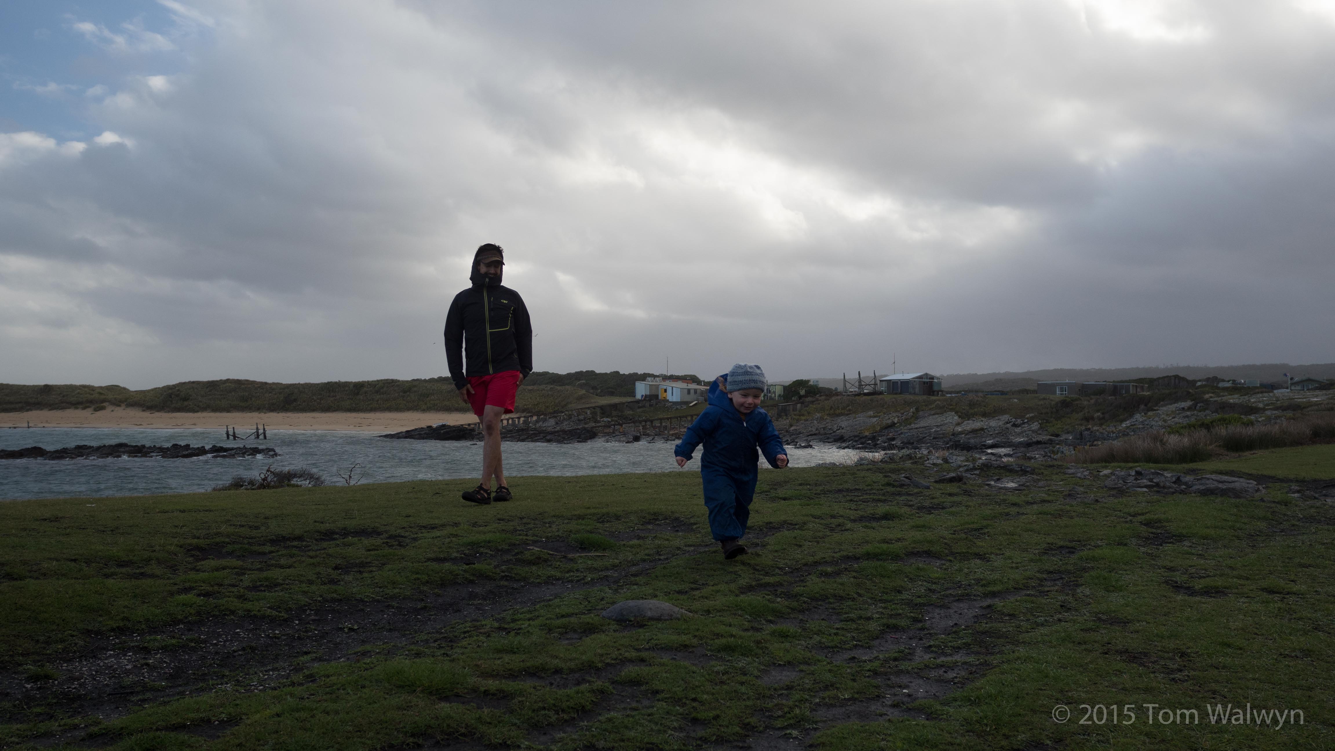 Sarah and Bryn are there to meet us at Temma where the route gains road access again.  Overnight the next front hits and the wind shifts to a more prevailing sou'westerly.