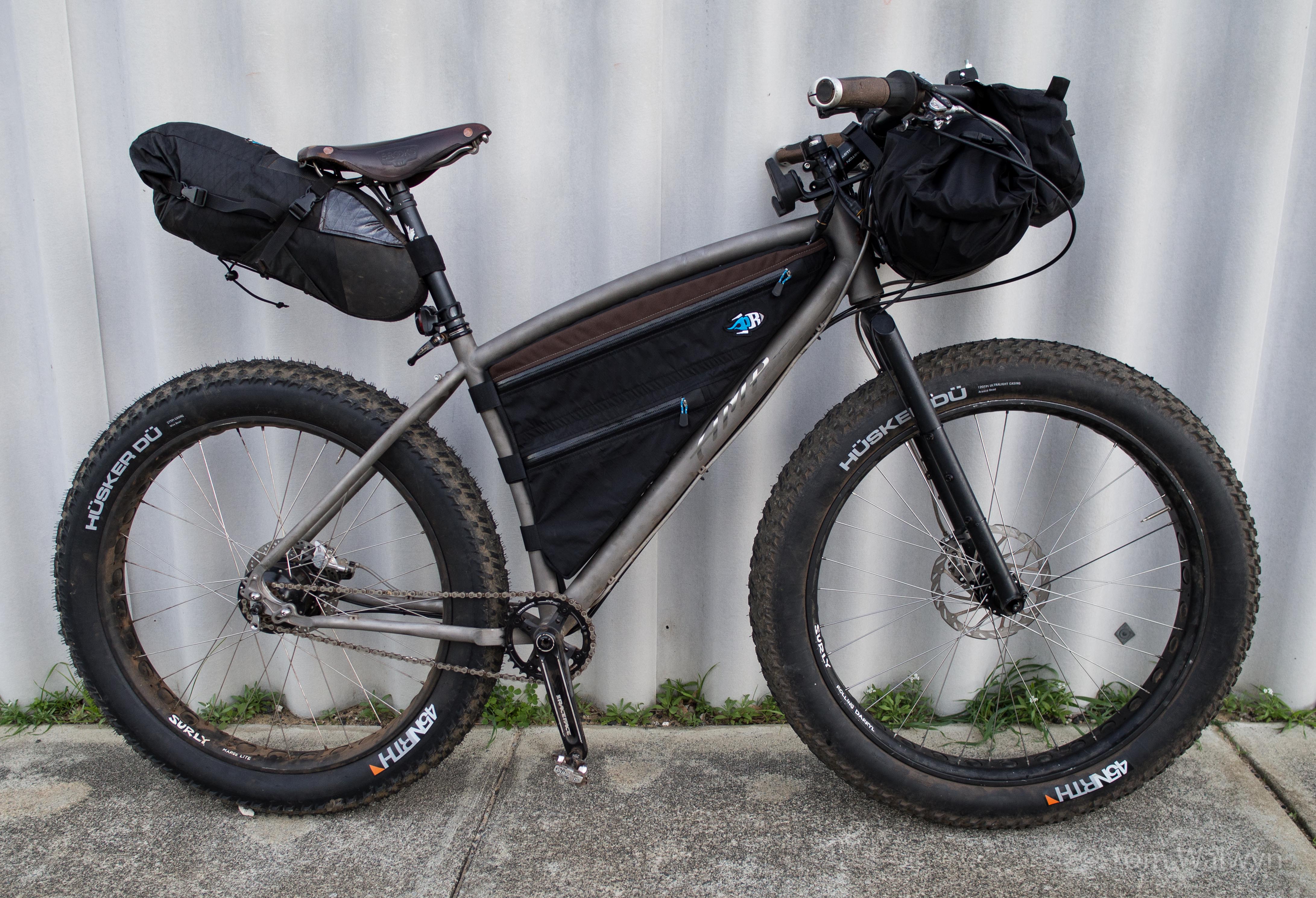 Inspired by riding with Joe Cruz, and meeting Scott Felter’s Jones Space-frame, this is a bike primarily aimed at soft stuff that would be otherwise un-rideable or nearly so. The need arises from our local mountain bike trail conditions in the dryness of summer, but also from a desire to ride the Canning Stock Route – one of Australia’s most challenging and remote tracks through 2000km of the West Australian hinterland, and lots of sand.